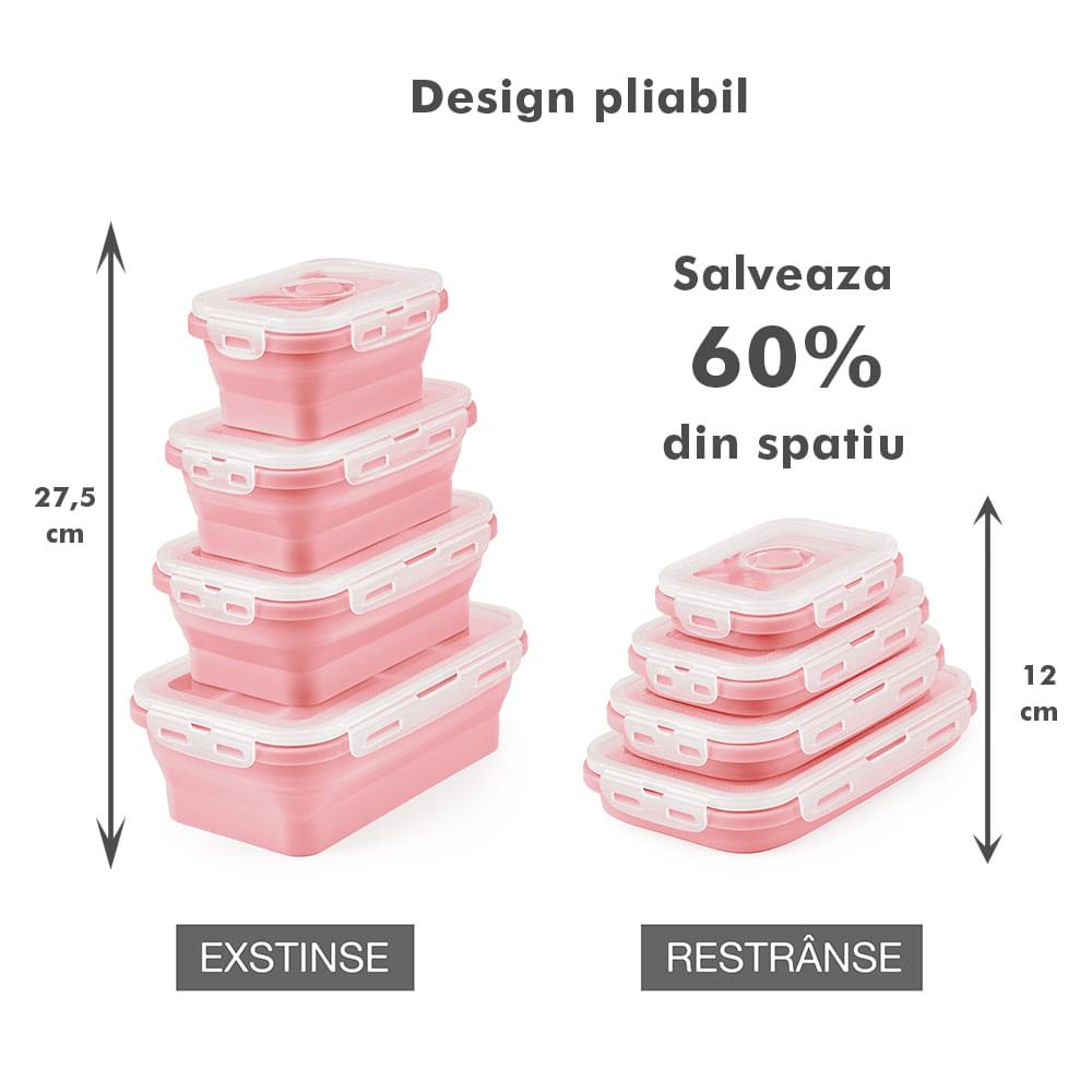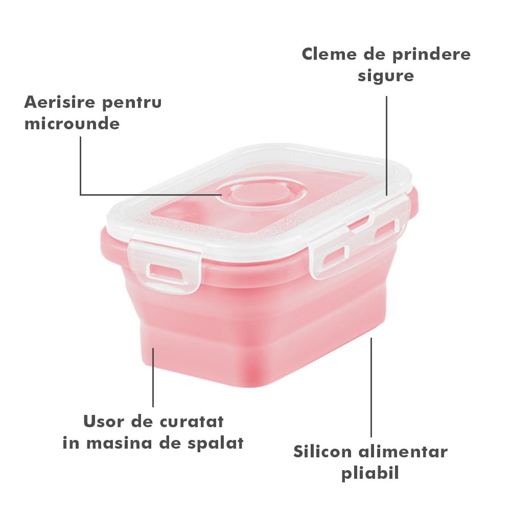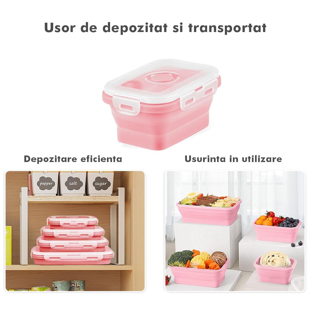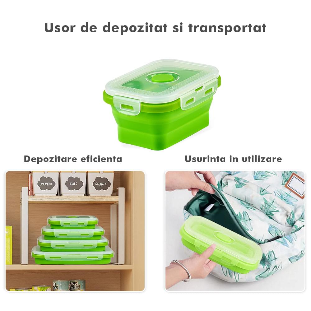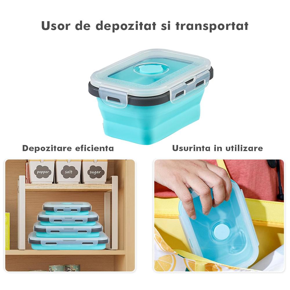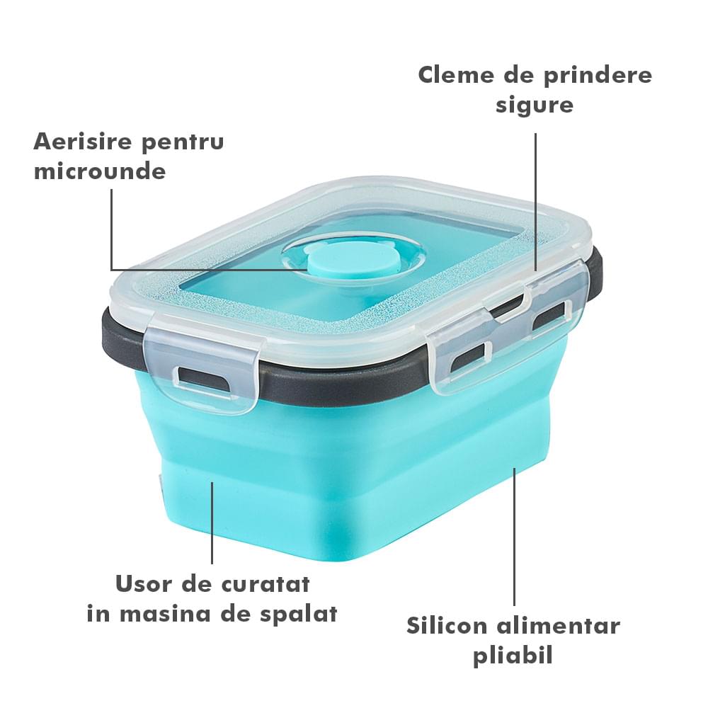 Megmaradt az étel? Csak dobd bele a dobozokba, majd be hűtőbe a kövekező alkalomra. Ilyen módon nem csak helyet spórolsz, hanem időt is melyet a számodra kedves személyekkel tölthetsz. Ajánlott, hogy a tárolóedények -40 és 200 fok közötti hőmérsékleten legyenek tárolva, használhatóak a mikróban vagy az elektromos sütőben. A Bővíthető Tárolóedény Készlet, különböző méretű, divatos, egymásra rakható, újrahasználható és összecsukható edényekből áll: kicsi- 350 ml közepes- 500 ml nagy - 800 ml nagyon nagy - 1200 ml. A tárolók minőségi élelmiszeripari szilikonból készültek, nem tartalmaznak BPA-t, latexet és más kémiai anyagokat és nem változtatják meg az élelmiszerek ízét és szagát. Ez az anyak ökológikus és az egészségre nézve jobb mint a műanyag, mely megrepedhet és rongálódhat. A szilikon tárolóedények könnyen moshatóak és fenntarthatóak. A száraz élelmiszerektől elkezdve, a folyékony élelmiszerekig, az előre feldarabolt és tisztított élelmiszerekig melyek később lesznek felhasználva az ételek elkészítéséhez, ez a készlet sokoldalú és tökéletes a különböző élelmiszerek tárolására. Egyesz tanulmányok alapján, használva ezeket a szilikon tárolóedényeket használva, 60%-ban több helyet spórolsz a konyhádban. onform unor studii, folosind caserole din silicon vei economisi peste 60% din spațiul din bucătăria ta. Ezeknek kapcsos tetejük van és élénken színezettek, így sokkal könnyebben megtalálod őket a szekrényben.