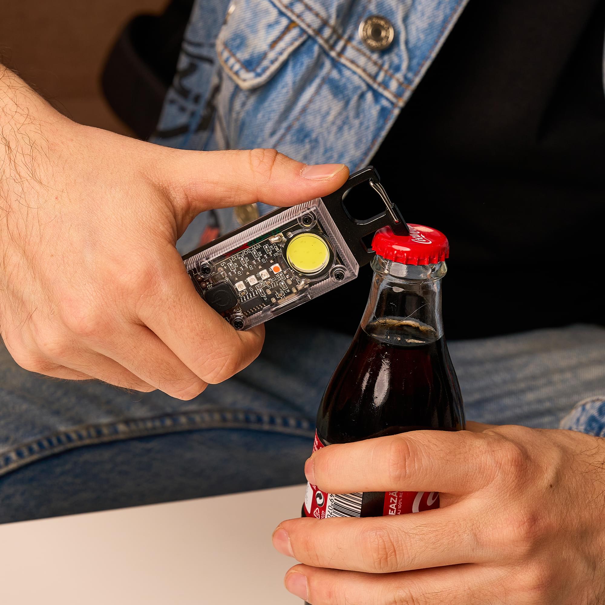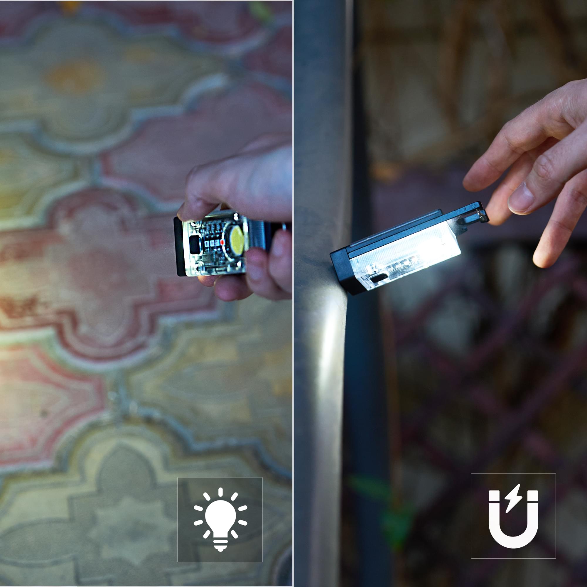 NAGYON FÉNYES ÉS MULTIFUNKCIONÁLIS: A COB munkalámpa kulcstartó típusú LED-je rendkívül fényes, akár 800 lumen fényerőt is képes produkálni. A hegymászáshoz tervezett csat, erős mágnes és a palacknyitó lehetővé teszi a zseblámpa különböző helyzetekben történő könnyű szállítását és használatát.