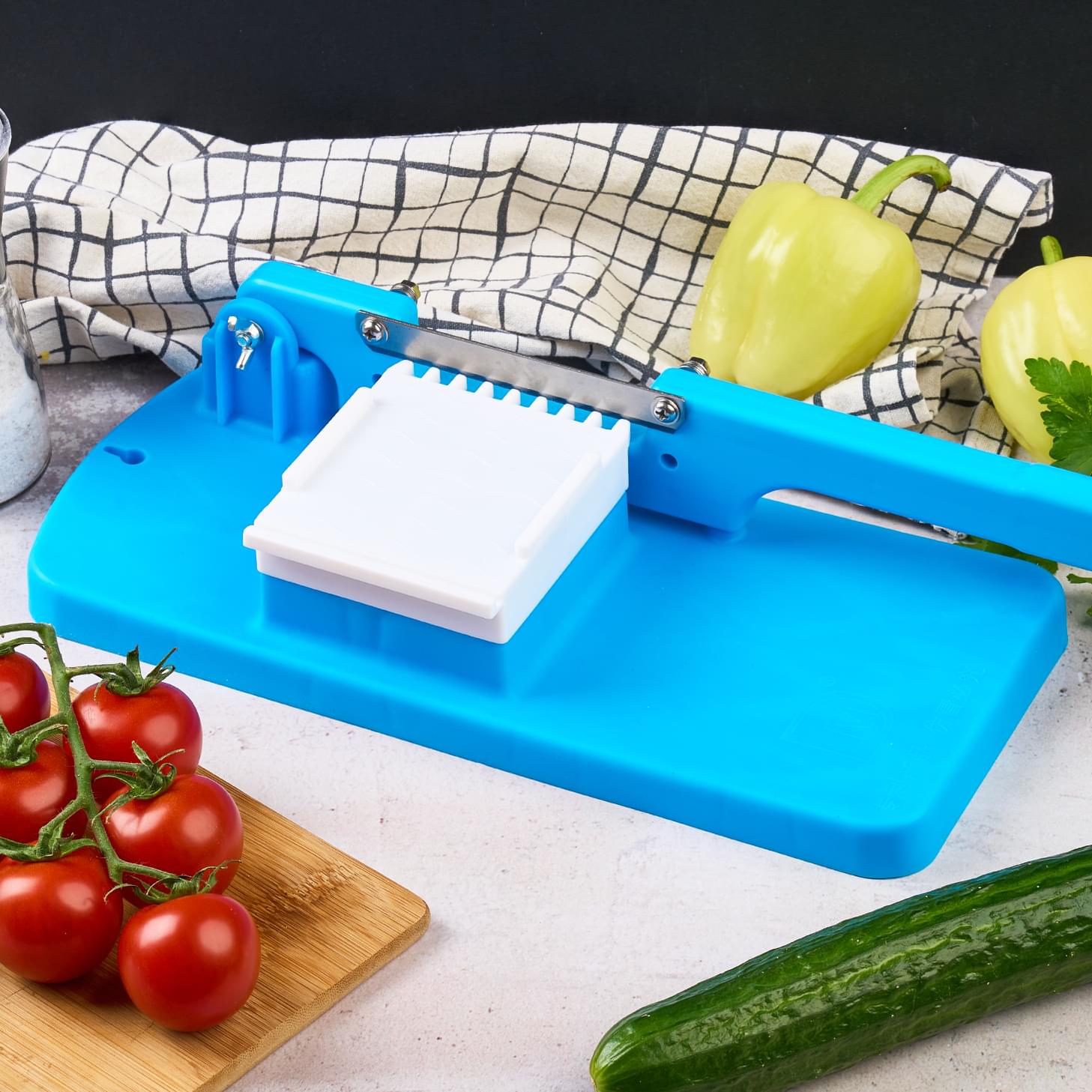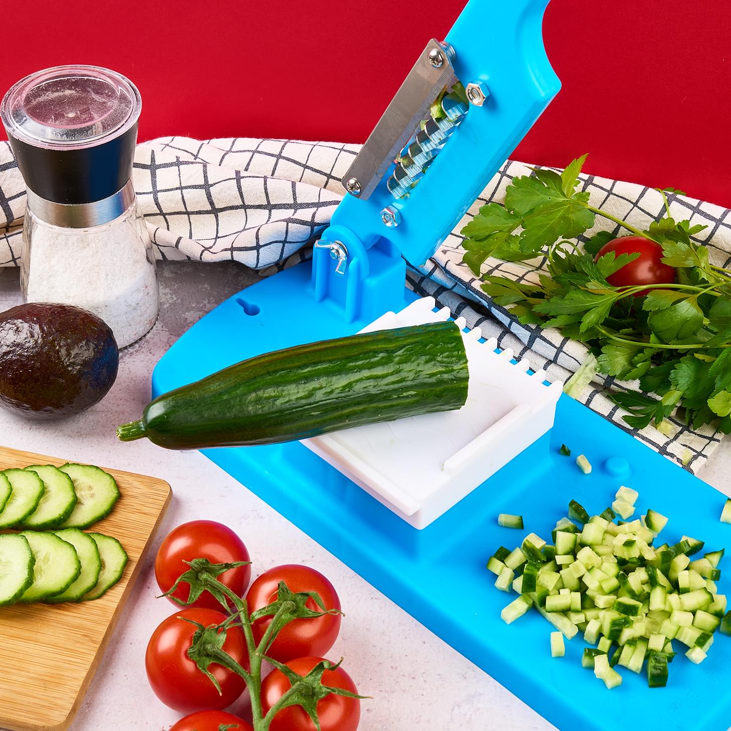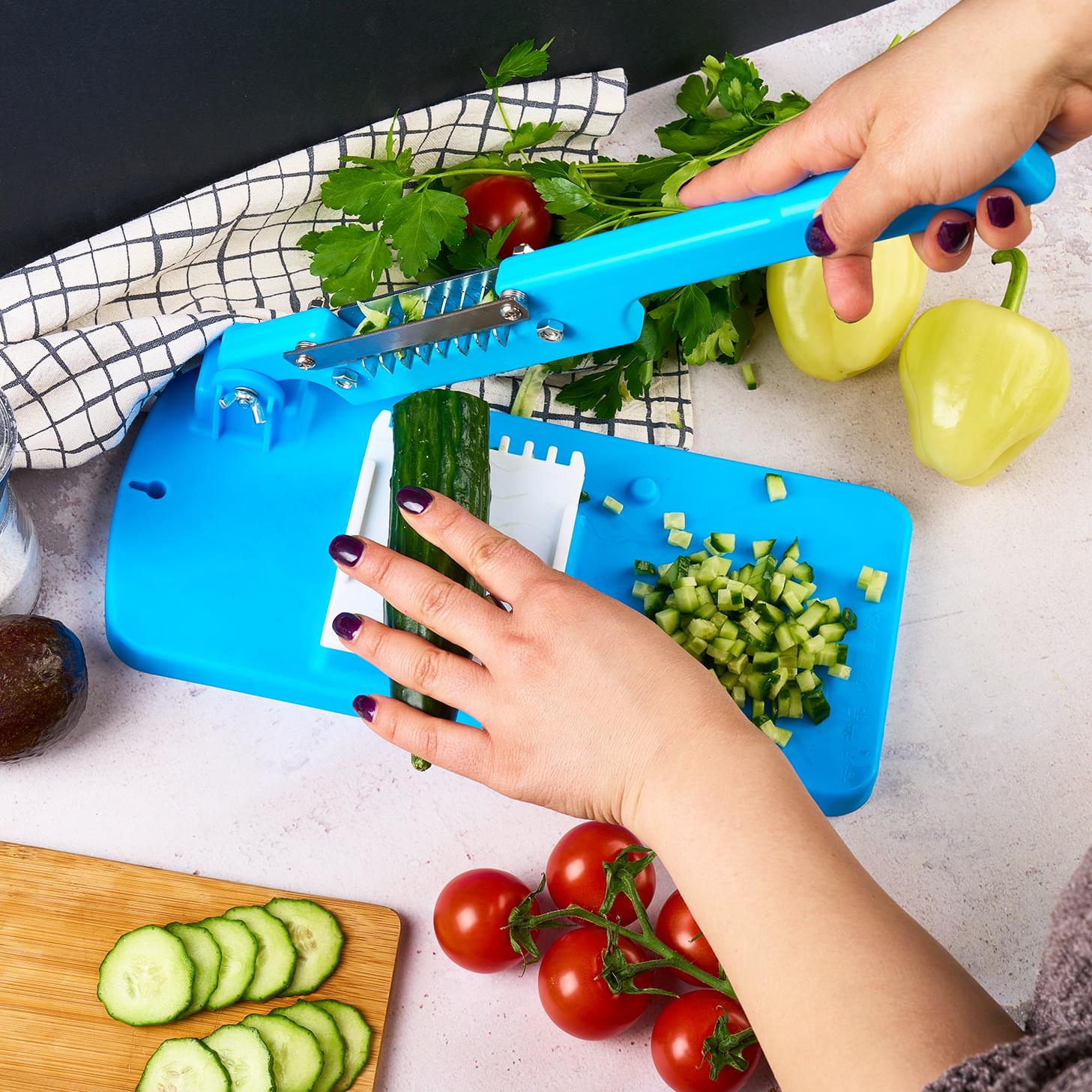 Kockázás lehetősége: A szeletelő nem csak szeletekre vágásra használható, hanem tartalmaz egy második pengét is a csomagban, amely kifejezetten a kockázáshoz lett tervezve. Ezzel az összetett lehetőséggel gyorsan és könnyedén vágja az élelmiszereket tökéletes kockákra salátákhoz, köretekhez vagy más elkészítményekhez.